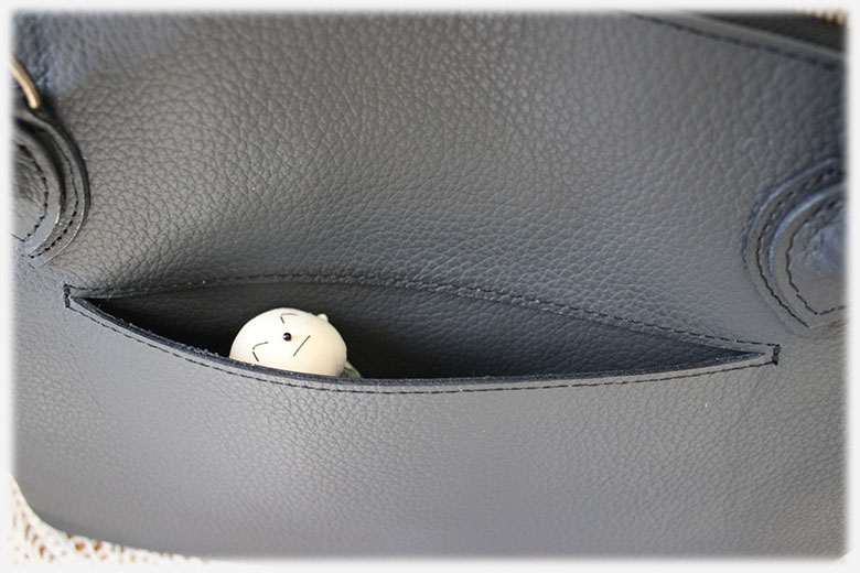 バッグ口は、両開きファスナーで、大きく開けますので出し入れがし易くなっております。